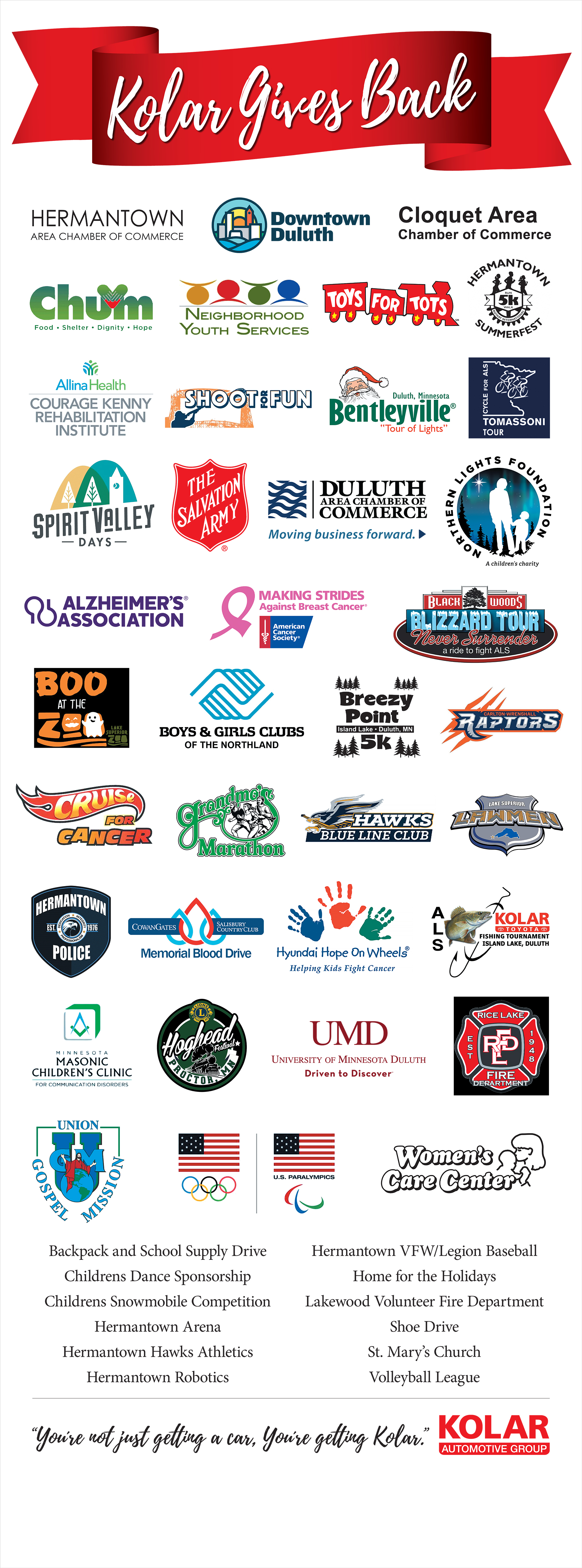 to make sure Christmas is special for the children and teenagers throughout the Northland! Each year customers of Kolar Toyota, and our staff join together to fill the Toyota Tacoma. We invite you to donate a new, unwrapped toy for 10% off your next service appointment.